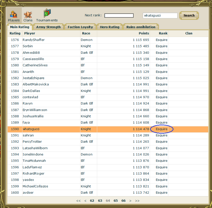As a new player your start at Esquire, 1 star. Go to the Rating (Trophy logo) top left, type your name in and you can see your position. Moving thru the grades you get Captain, Master, Marshal and eventually Suzerian (5 stars).