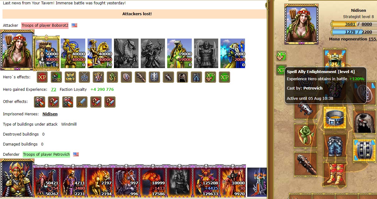 Small player out of nowhere destroys exactly 7k unprotected healers from Aniuta2 (whom I may remind you is "Under Protection of Jackslater"). The kicker here is that the attacker is actually spell buffed by the defender! This is the most obvious example of a staged battle. Why does this keep happening? What is the result?