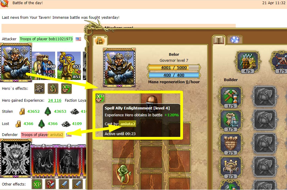 Now he thought that his army was strong enough and wanted to test its strength. We broke the alliance, and he started sending attacks on me while I calculated various options using the calculator. At some point, he lost control of the game and didn't manage to cancel the attack in time. As a result, his army was killed by mine.